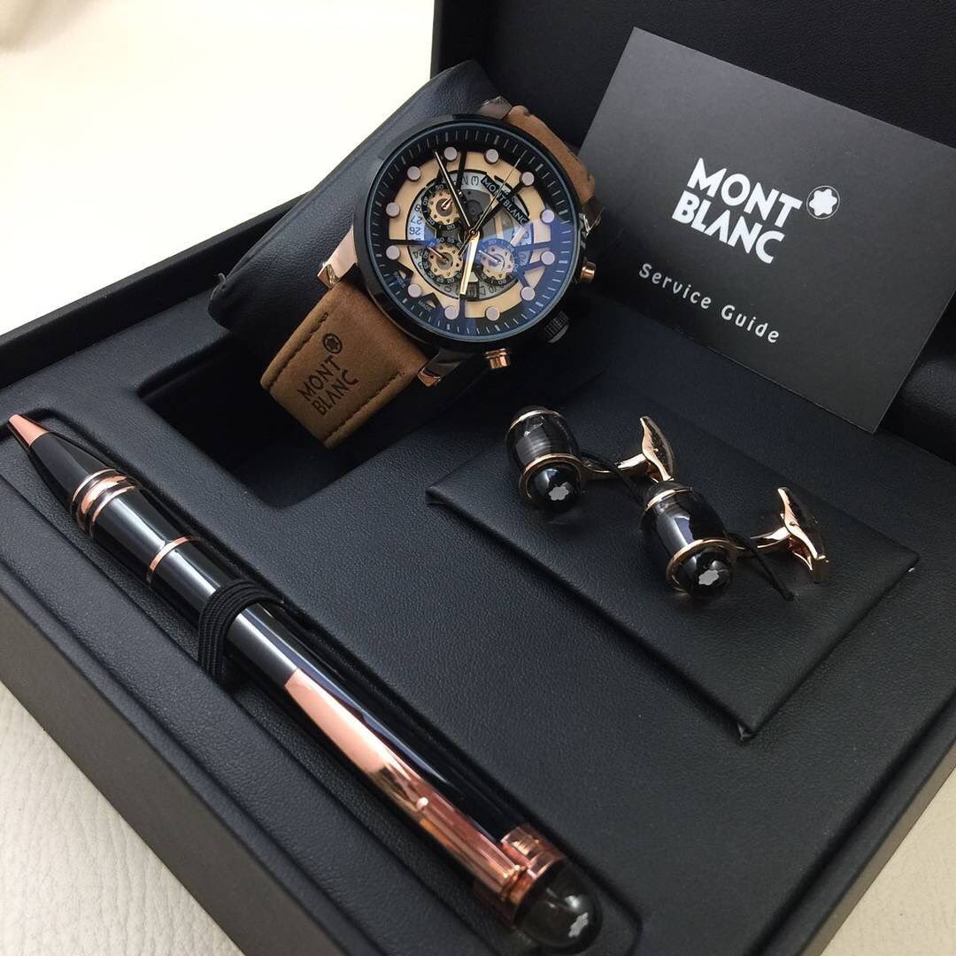 ساعات منت بلانك جلد Mont Blanc مع ساعه نفس الماركه درجه اولى هدايا هنوف